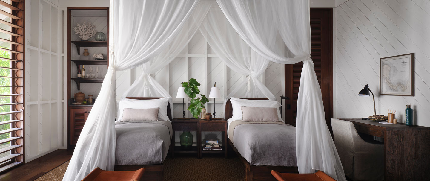 4 bedrooms, each with en-suite bathrooms (two King-size beds and four twin beds)